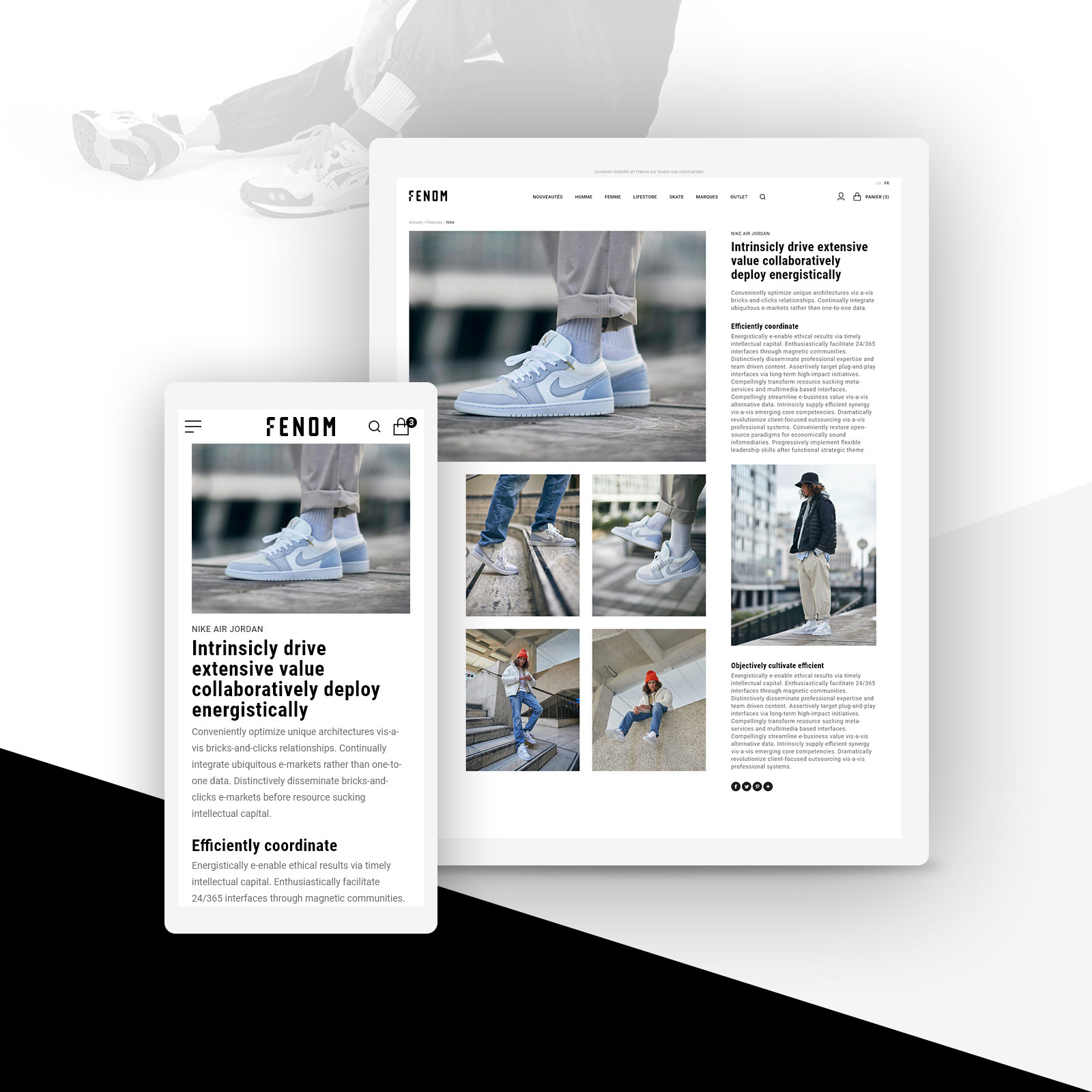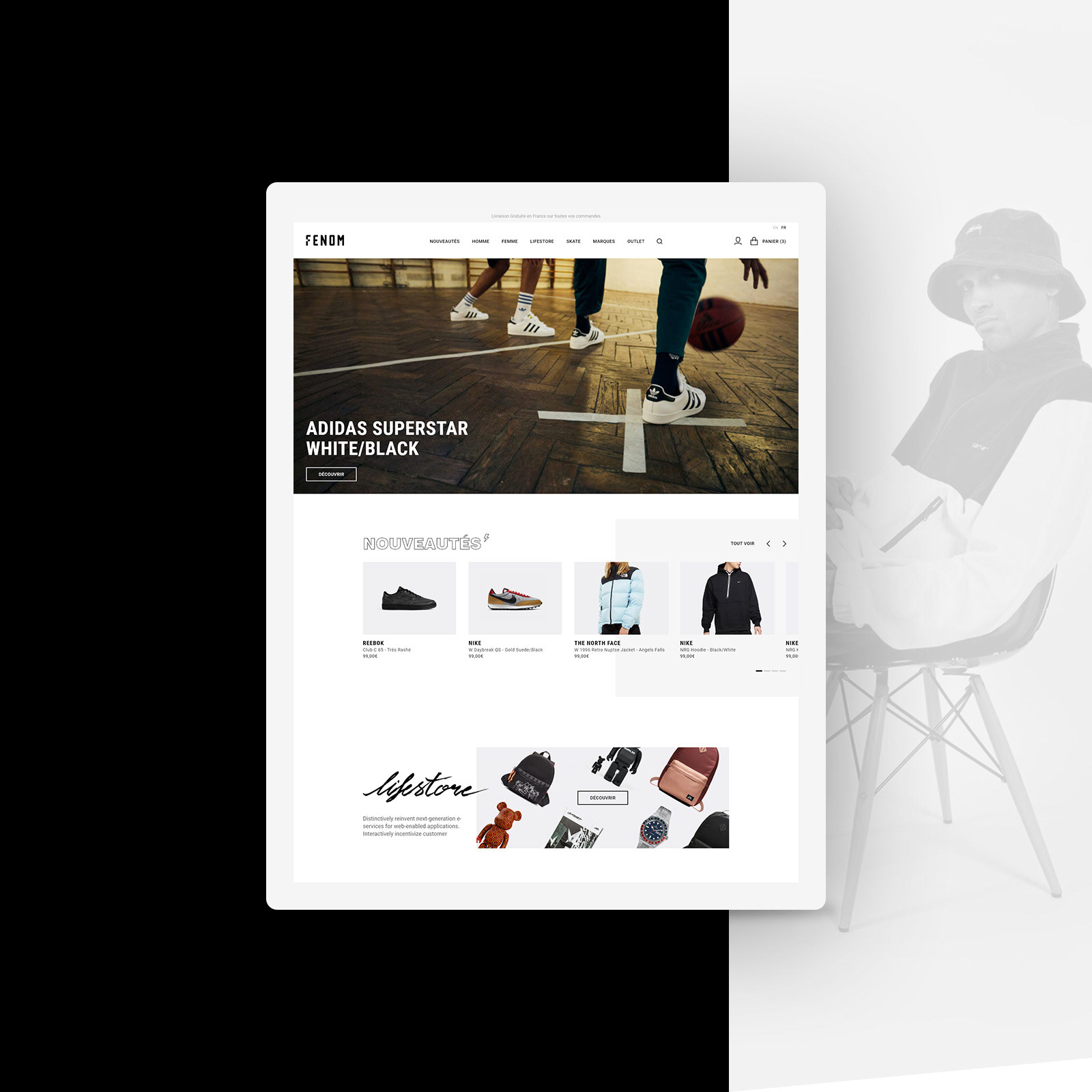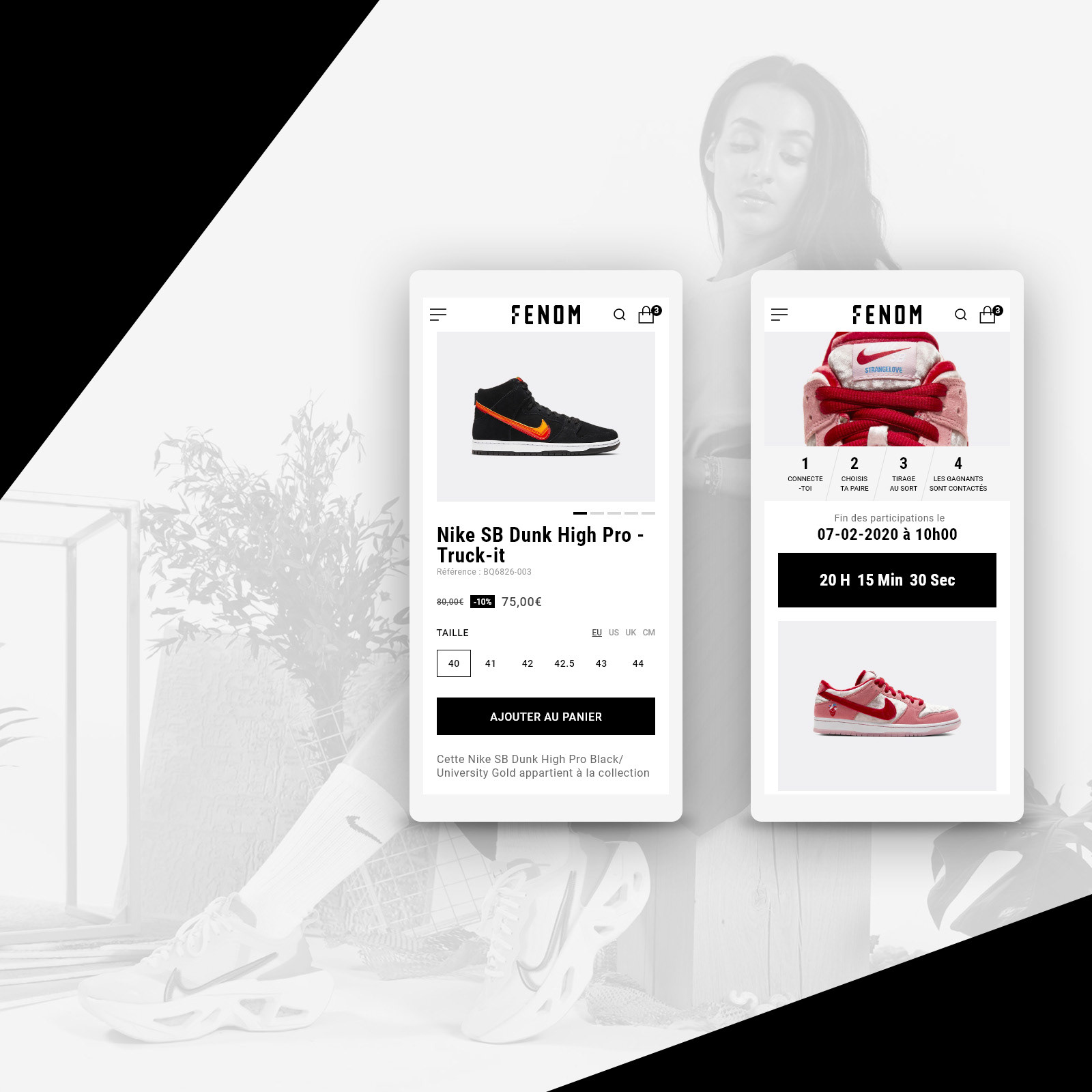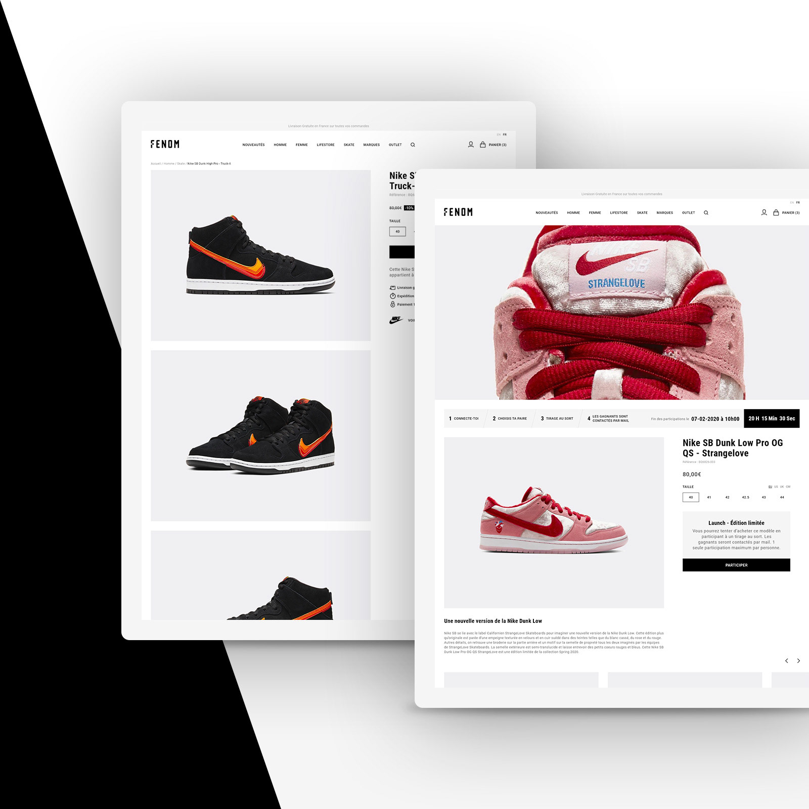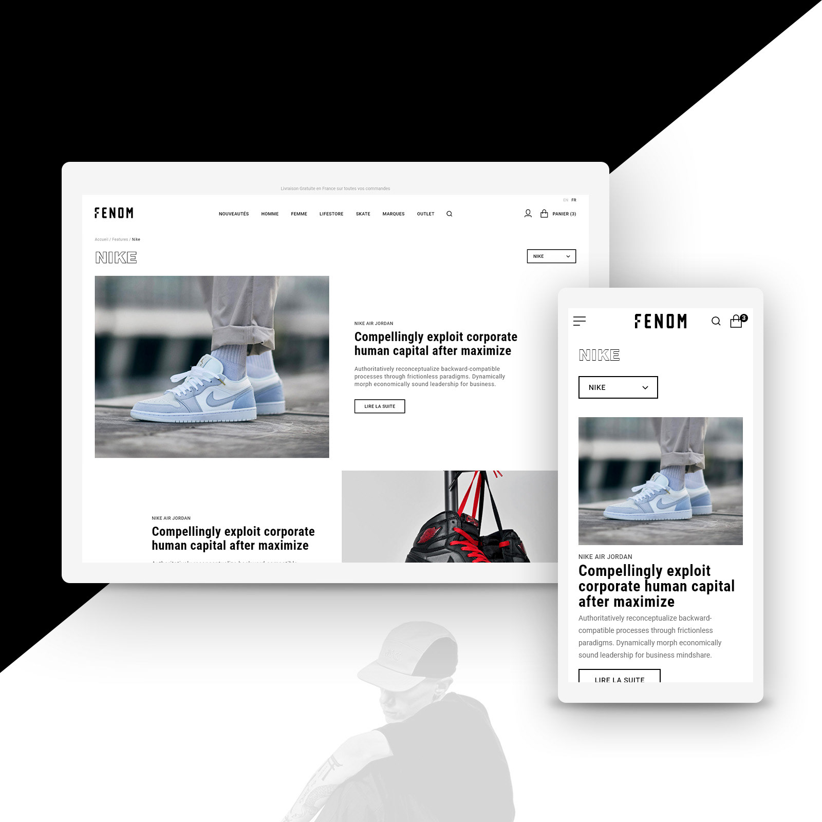 Refonte de l'e-shop Fenom (SNKRS), revendeur et passionné de sneakers, univers streetwear et skate.